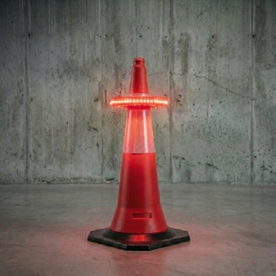 El Baliza Led Acústica Audio Halo rompe la limitación del plano del suelo. Úsalo sobre un cono para delimitar tráfico o adhiérelo magnéticamente a una columna o estantería a la altura de los ojos para maximizar la visibilidad.