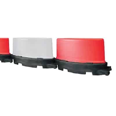 La Barrera New Jersey Road Runner Apilable está considerado un delineador con peso propio que no requiere relleno de arena o agua. Las ruedas permiten maniobrar fácilmente y una cola que permite una conexión rápida. El pasador en la cola se entrelaza con la parte inferior del separador contiguo para crear carriles. Dispone de ruedas para facilitar el movimiento. Está diseñado y construido de manera robusta – capaz de soportar altos impactos. Excelente resistencia al viento y dispone de ranuras en la parte inferior para moverlos con carretillas elevadoras o grúas.