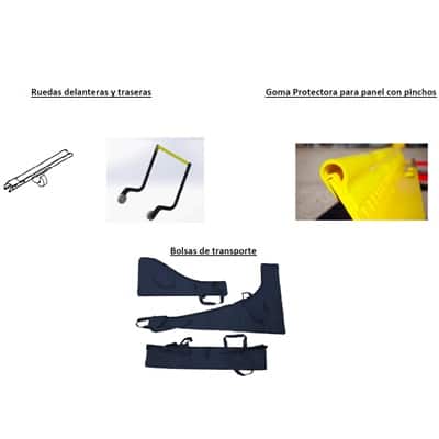 - Ruedas delanteras y traseras para desplazamiento puntual de la barrera.