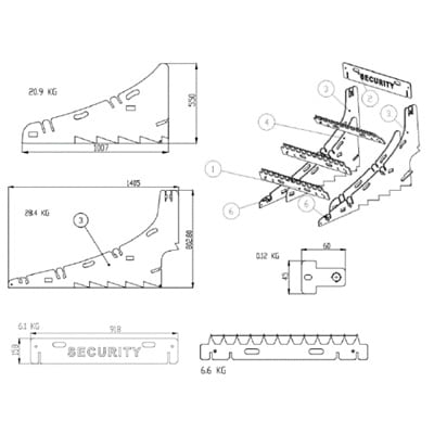 - Todos los componentes de la barrera no exceden 25 Kg, el limite de peso para prevención de riesgos laborales según la Unión Europea.