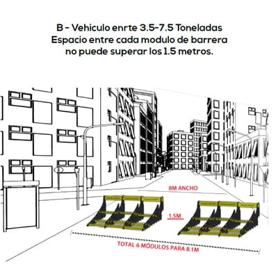 - Bloqueo de acceso a una furgoneta o a un camión, permitiendo acceso a peatones desde los laterales.