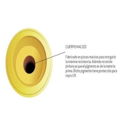 El Bolardo Polietileno 110x1500mm Amarillo está diseñado con materiales resistentes y duraderos como el polietileno, pero además este bolardo está fabricado en polietileno macizo para otorgarle la máxima resistencia. Además para otorgarle una gran durabilidad y resistencia en exteriores ante condiciones climatológicas adversas, no existe pintura, ya que el pigmento amarillo es de la materia prima (Polietileno). Y dicho pigmento tiene protección ante rayos UV.