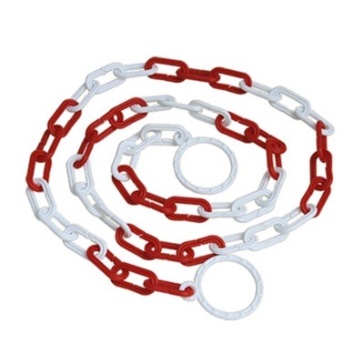 Es una cadena Roja y Blanca fabricada en PE blanco y rojo de 2 metros de longitud con eslabón de 60 x 8 x 6 milímetros.