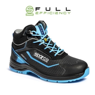 - EMPEINE: Tejido técnico anti abrasión regenerado Sparco® FULL EFFICIENCY y refuerzos hf en la puntera. Segundo par de cordones de combinación de color incluido.