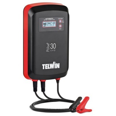 El Cargador de baterías Pulse 30 EVO 12 – 24 V de Telwin, funciona como mantenedor de carga y tester electrónico multifunción para baterías WET, GEL, AGM, MF, PbCa, EFB, Li de 12 – 24 V.