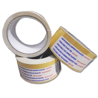 Son bandas adhesivas formadas por un soporte central como el polipropileno recubierto por adhesivo en ambas caras. Una cara se adhiere al una superficie u objeto y la otra a otro objeto para su unión. Están diseñadas para soportar tracción, pisadas, humedad moderada y movimientos limitados, manteniéndose estable sin que se desplace. El adhesivo suele ser de acrílico, caucho sintético o hot-melt, cada uno con propiedades distintas de agarre, resistencia térmica y durabilidad. Una instalación correcta puede aumentar la durabilidad hasta un 50%.