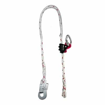 - Conectores: Conector simétrico con sistema de bloqueo manual de rosca utilizado para unirse a un punto de sujeción del cinturón de posicionamiento. Carga de rotura mínima: 22 kN. Diámetro abertura: 16 mm. Uno de los extremos de la cuerda incluye un conector mod. 32: Conector direccional de acero. Bloqueo de seguridad automático. Utilizado para realizar anclajes o para conectarse en estructuras. Carga de rotura mínima: 22 kN. diámetro abertura: 18 mm. El otro extremo termina en un nudo hecho con la misma cuerda.
