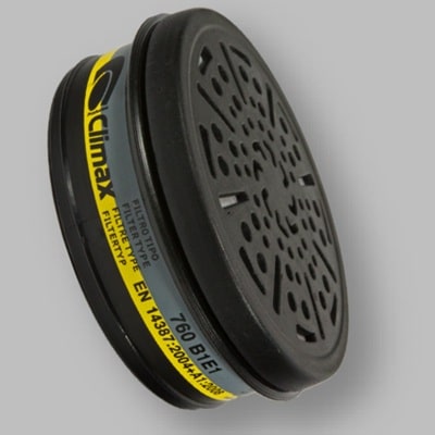 El Filtro 760 BE1 para Semi Máscara 761 está diseñado y fabricado específicamente contra gases y vapores de compuestos químicos formado por una carcasa fabricada en material plástico con forma acampanada para permitir un flujo de aire más favorable. Ofrece protección contra gases y vapores inorgánicos (tipo B) y de dióxido de azufre (tipo E). El uso del filtro 760 está reservado a personas competentes y que hayan recibido una formación adecuada o bien que se emplee bajo la supervisión de un superior competente para ello.