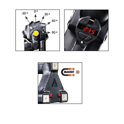 - Cabeza pivotante: -30º / 0º / 30º / 60º / 90º.