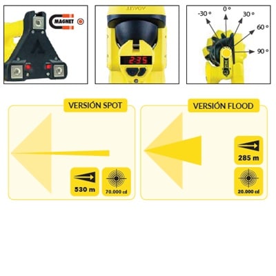 - Fuente luminosa: 70.000 cd (Spot) – 500 lm.