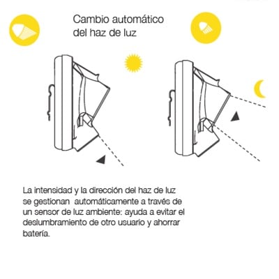- La intensidad y la dirección del haz de luz se gestionan automáticamente a través de un sensor de luz ambiente.