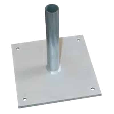 El Pie Soporte Atornillable para Poste Ø50mm es un pie o soporte para señales de tráfico. Fabricado en tubo de acero galvanizado en frio. Preparado para insertar cualquier poste de tubo de Ø50 milímetros de diferentes alturas y poder atornillarlo al suelo mediante 4 tornillos de manera rápida y segura. Gracias a esta medida se previene de vuelcos a consecuencia de viento o impactos y de esa manera podremos instalar señales viales de manera rápida y segura.