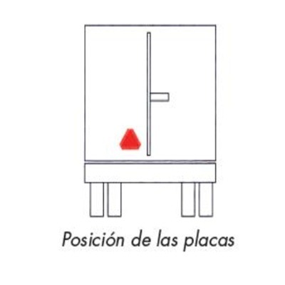 - Material: Aluminio con vinilo fluorescente naranja en el triángulo interior y vinilo Réflex N2 en color rojo para bandas exteriores.