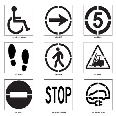 - Utilidad de la Plantilla: Permite de manera rápida señalizar accesos, rutas, indicaciones a los usuarios o indicar que plazas de parking están reservadas a coches eléctricos, minusválidos o zonas reservadas para ellos.