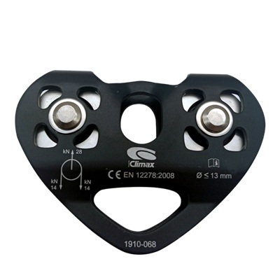 Es una polea diseñada para el desplazamiento por cuerda o cable. Es una polea extremadamente simple y rápida de instalar, esta polea de placas laterales fijas asegura una perfecta estabilidad gracias a las dos roldanas en línea. Diseñada y fabricada con una carga rotura mínima de 28 kN. Es una polea compatible con cuerdas de hasta 13 mm de diámetro y tiene un diseño de placas laterales fijas con doble roldana en línea.