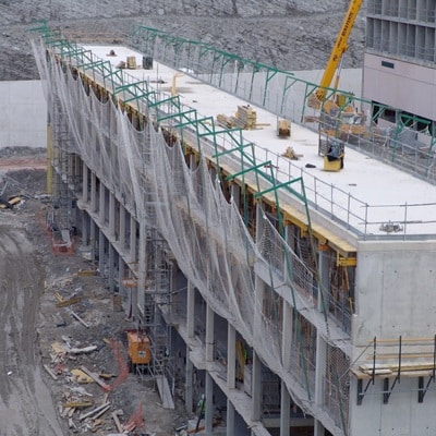 La Red Vertical Tipo V Clase A2 o también denominada “tipo horca”, es una red que se utiliza, generalmente, en obras de edificación. La configuración de este sistema permite cubrir el riesgo de caída por el perímetro exterior de las estructuras de hormigón, cuando se están realizando tareas de encofrado y hormigonado de los forjados superiores. Sin embargo, no evita el riesgo sino que limita la distancia de caída y, conjuntamente con la enorme capacidad de la red para soportar grandes deformaciones plásticas, provoca la disipación de la energía cinética, garantizando la amortiguación y minimizando los efectos de la caída al trabajador.