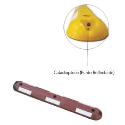 - Zonas Reflectantes: 6 bandas blancas a lo largo del separador + 1 catadióptrico en cada extremo para mejorar la visibilidad.