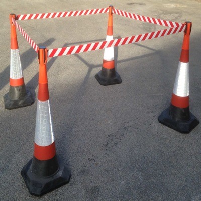 Los tensacone con cinta extensible de 5 metros de longitud son perfectos para colocar encima de los conos y así poder delimitar espacios o marcar caminos por donde pueden transitar las personas o vehículos.